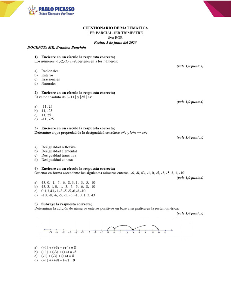 Ordenar en forma ascendente los siguientes números enteros: -6, -8, 43, -1, 0, -5, -3, -5, 3, 1, -10