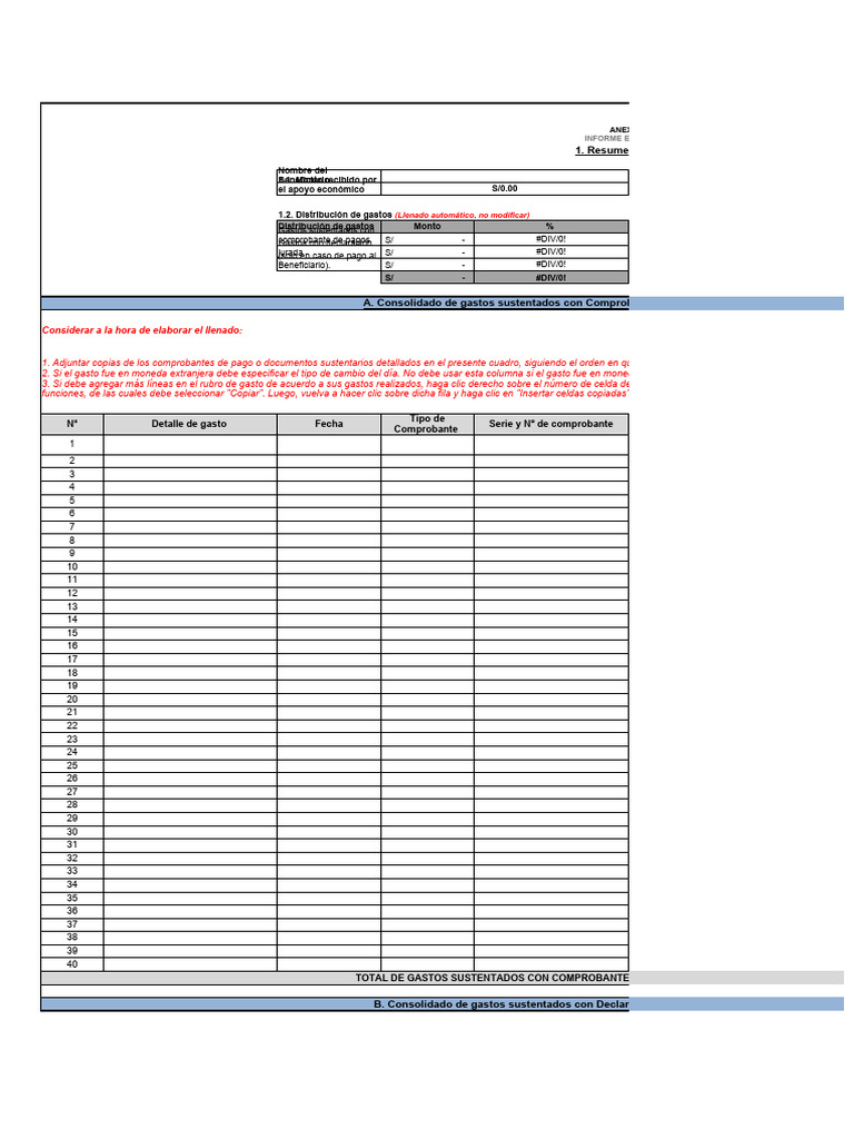 B. Consolidado de gastos sustentados con Declaración Jurada financiados con el apoyo econó