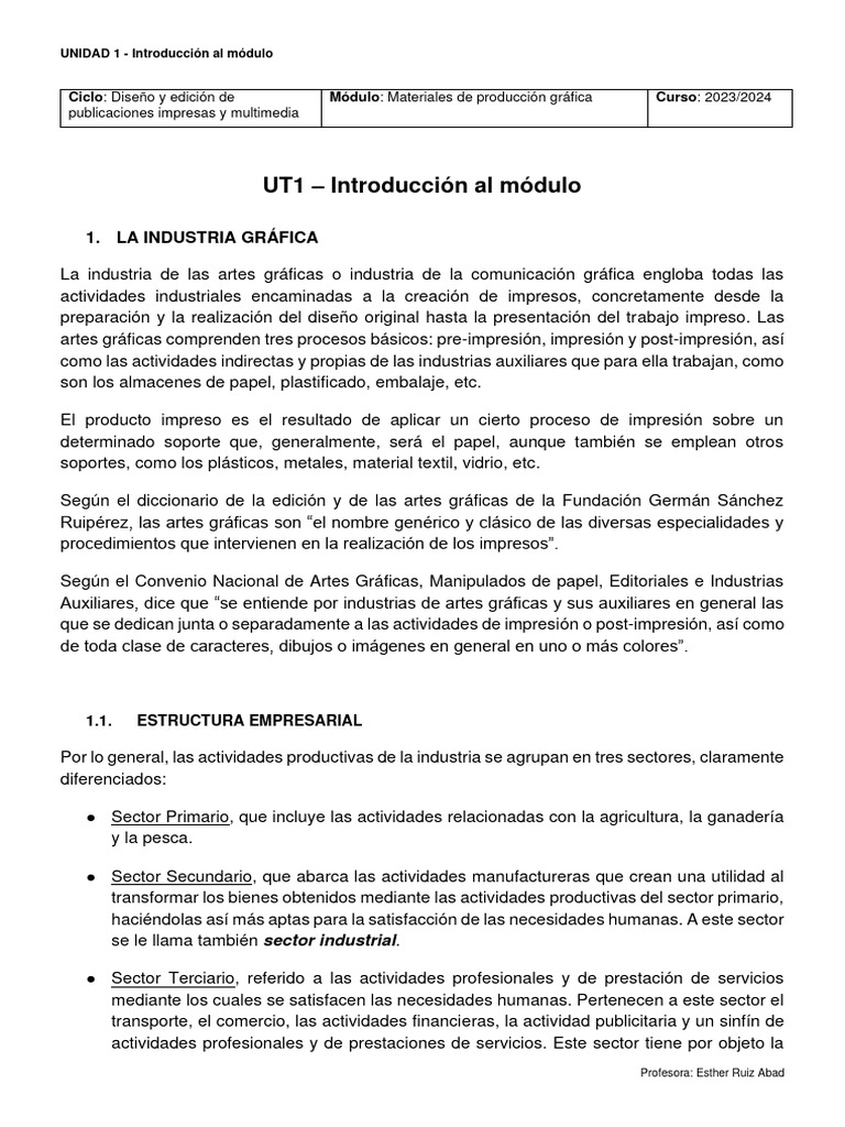 Ciclo: Diseño y edición de Módulo: Materiales de producción gráfica Curso: 2023/2024