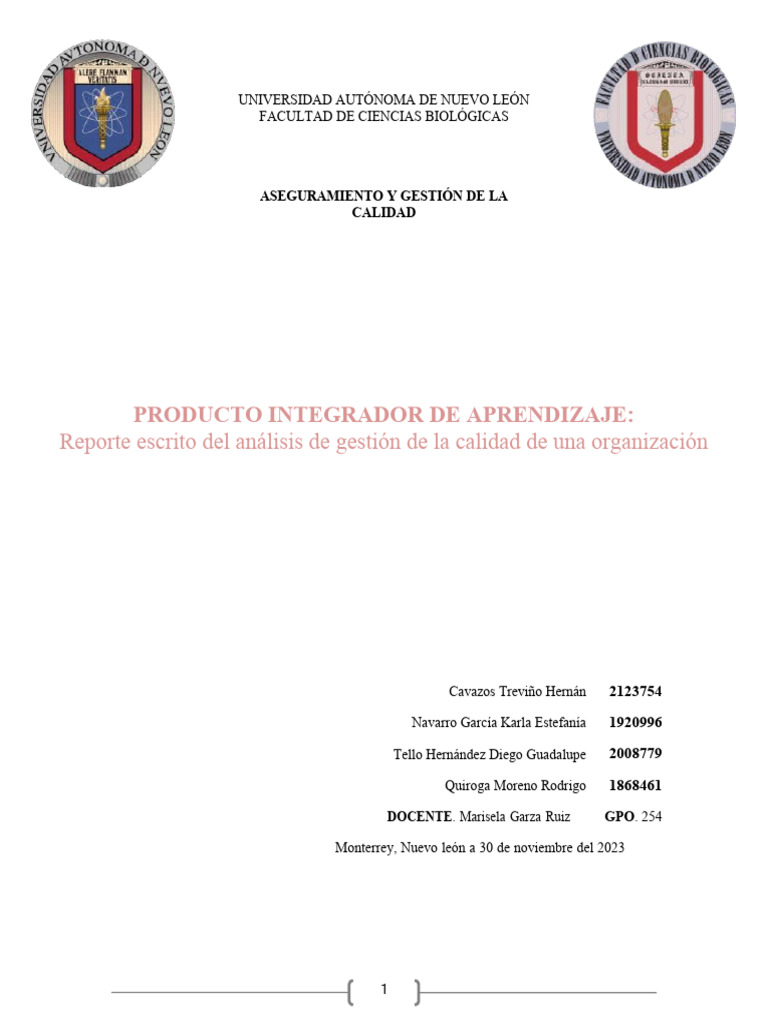 Reporte escrito del análisis de gestión de la calidad de una organización