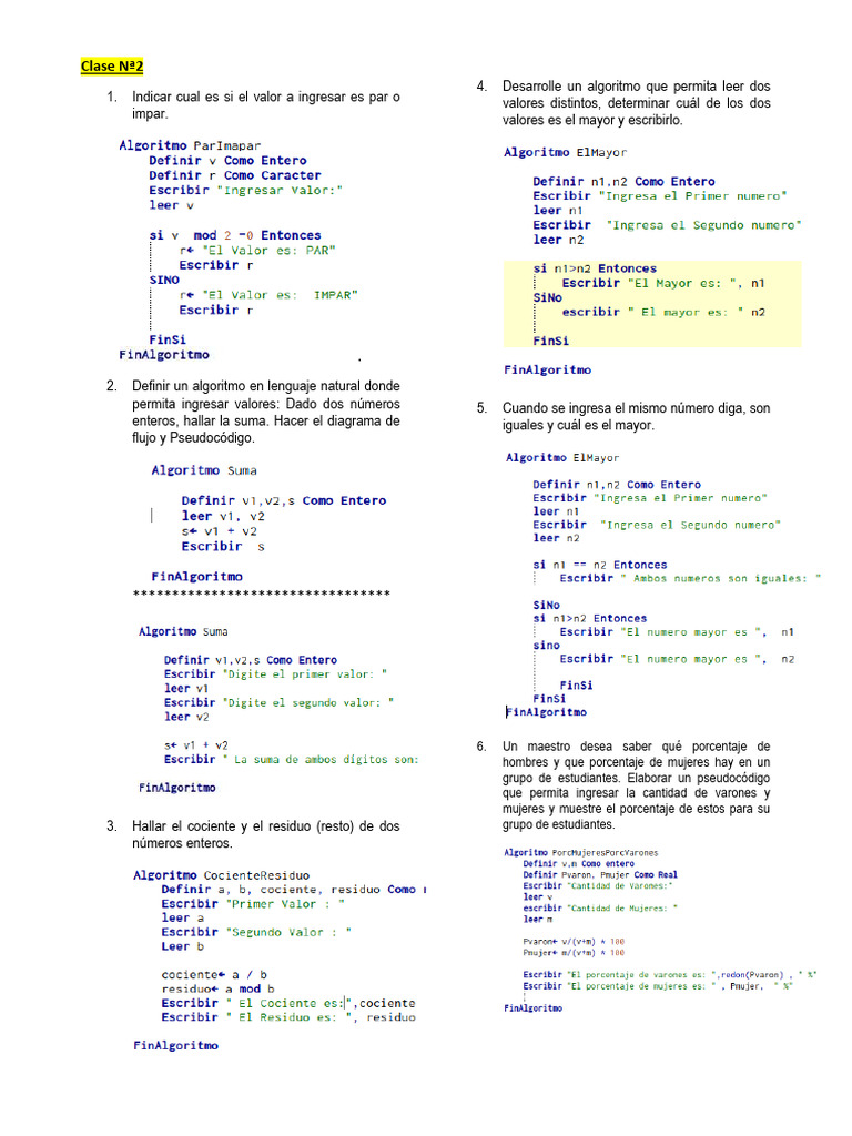 1. Indicar cual es si el valor a ingresar es par o valores distintos, determinar cuál de los dos