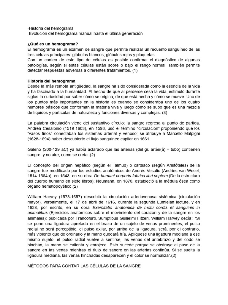leucocitos por métodos manuales, hasta los modernos hemogramas, con más de 30