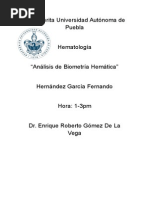 realización de la biometría hemática y el número de parámetros que la conforman, la
