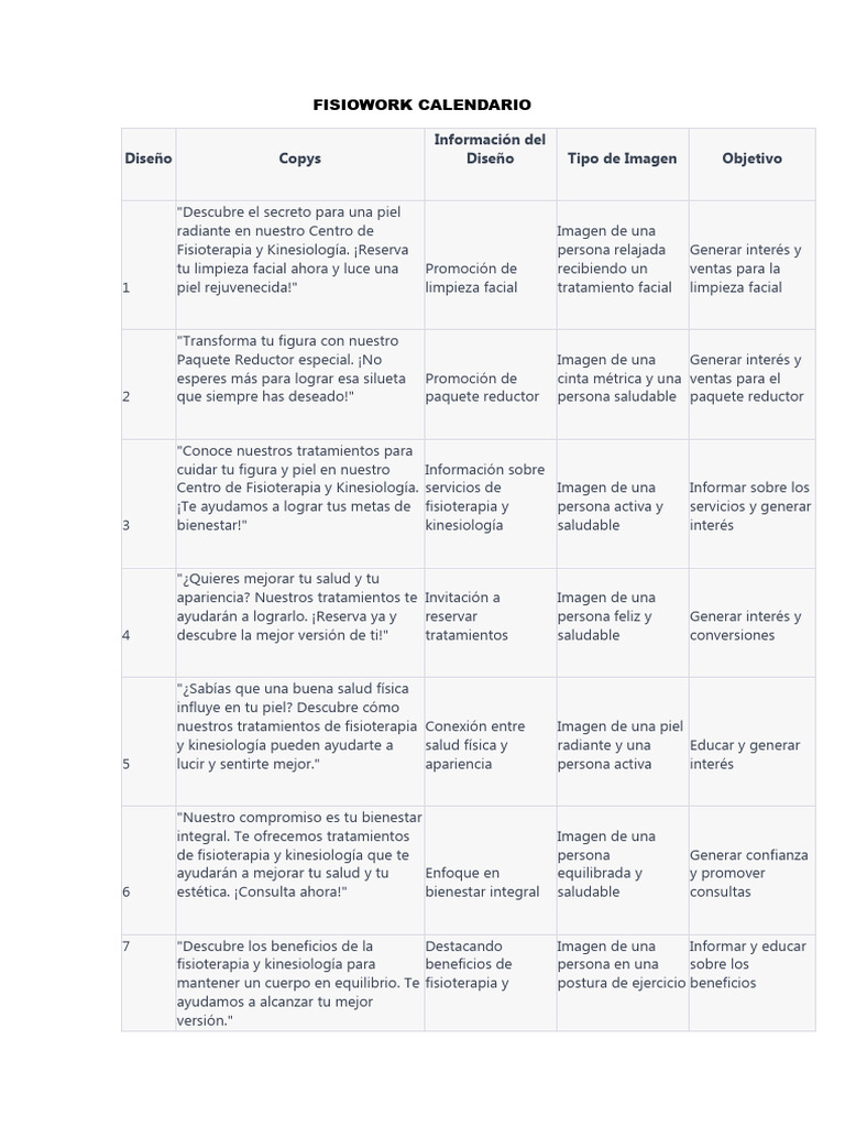 Diseño Copys Diseño Tipo de Imagen Objetivo