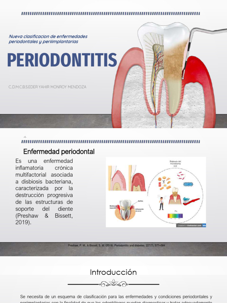 3. Mariano Sanz, M. T. (2019). Periodontitis. Orientación para clínicos. Sociedad Española de Periodoncia y Osteointegración, 2019, 12.