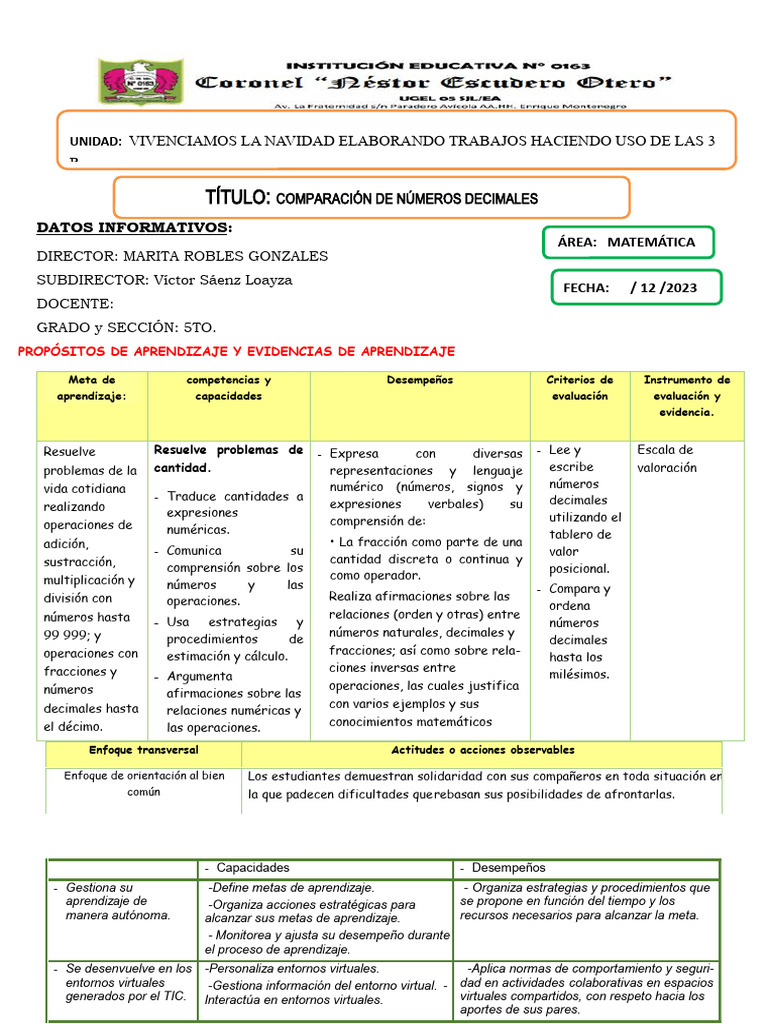 TÍTULO: COMPARACIÓN DE NÚMEROS DECIMALES