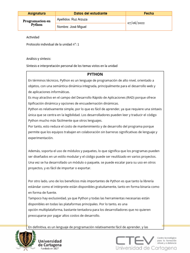 Protocolo individual de la unidad n°: 1