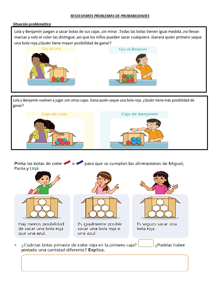 Lola y Benjamín vuelven a jugar con otras cajas. Gana quién saque una bola roja. ¿Quién tiene más posibilidad de