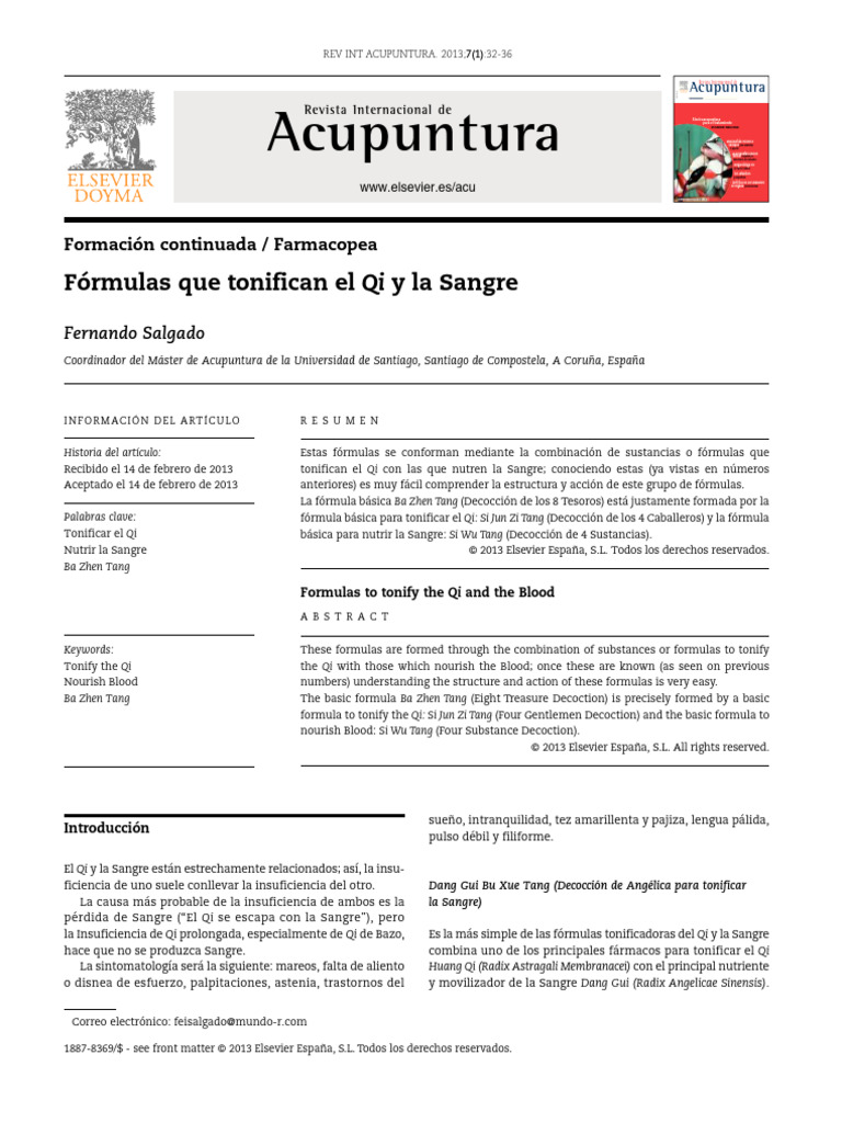 Recibido el 14 de febrero de 2013 tonifican el Qi con las que nutren la Sangre; conociendo estas (ya vistas en números
