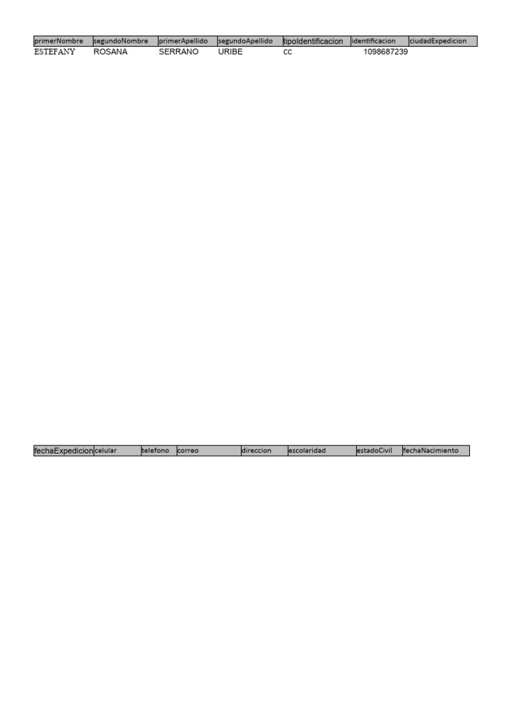 fechaExpedicion celular telefono correo direccion escolaridad estadoCivil fechaNacimiento