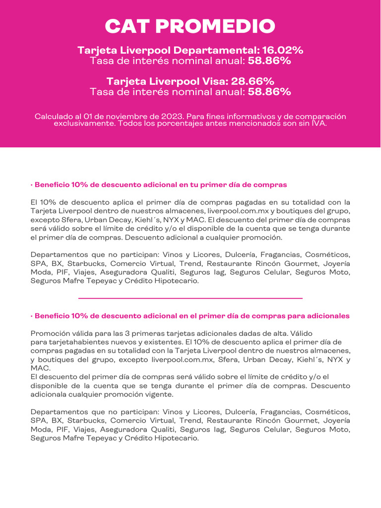 externos a Liverpool y del 20% en las tiendas Liverpool de la República Mexicana,