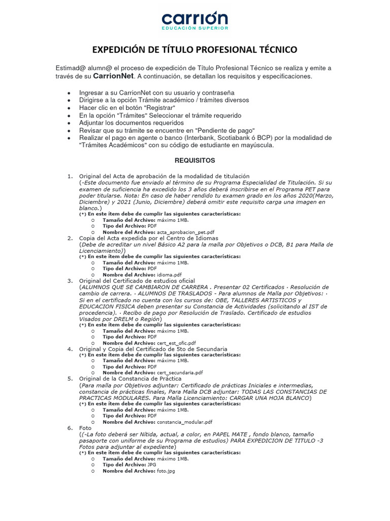 EXPEDICIÓN DE TÍTULO PROFESIONAL TÉCNICO