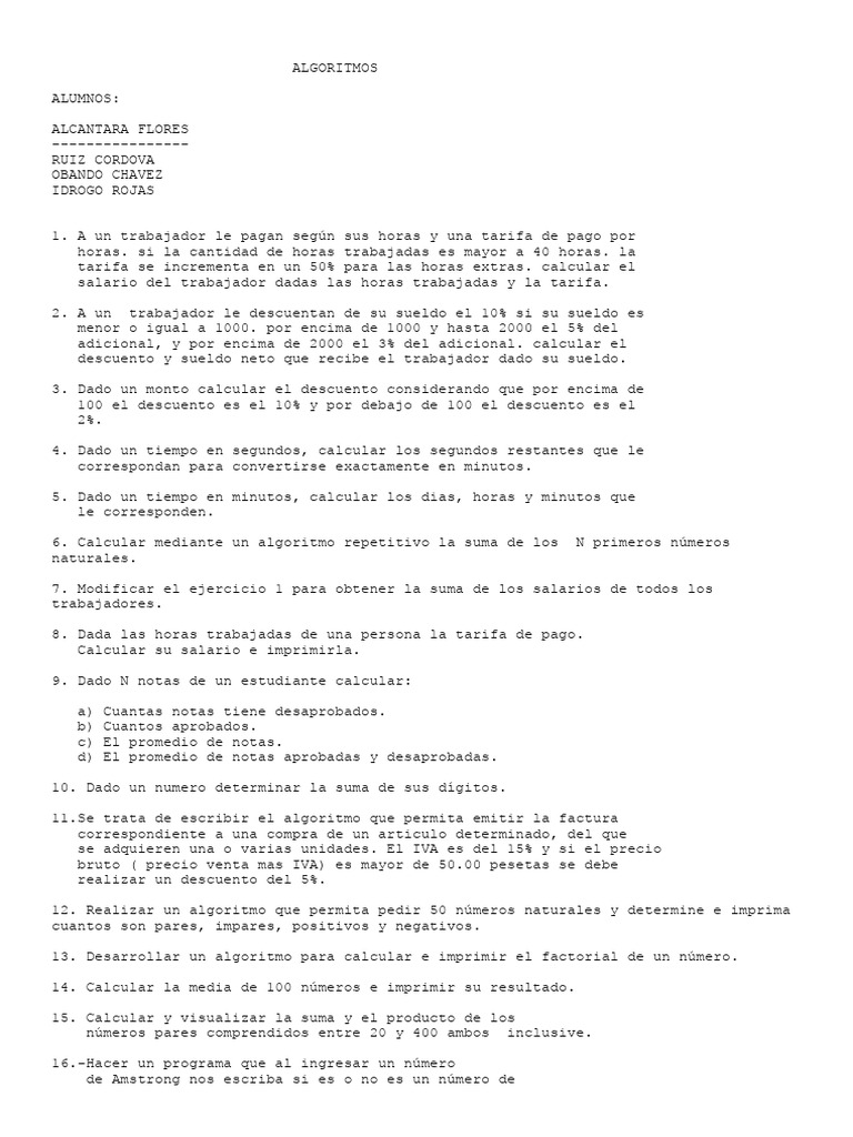 suma, resta, multiplicacion y division. El proceso debe terminar cuandon se hallan