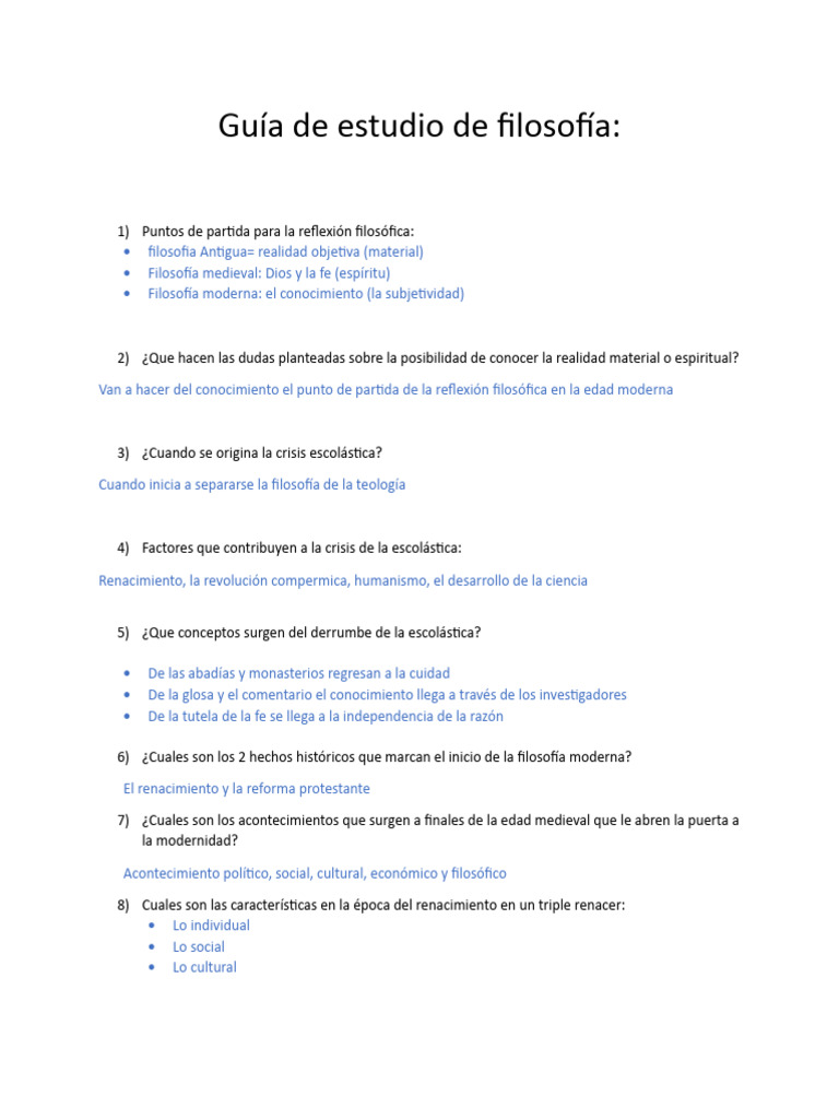 Guía de estudio de filosofía: