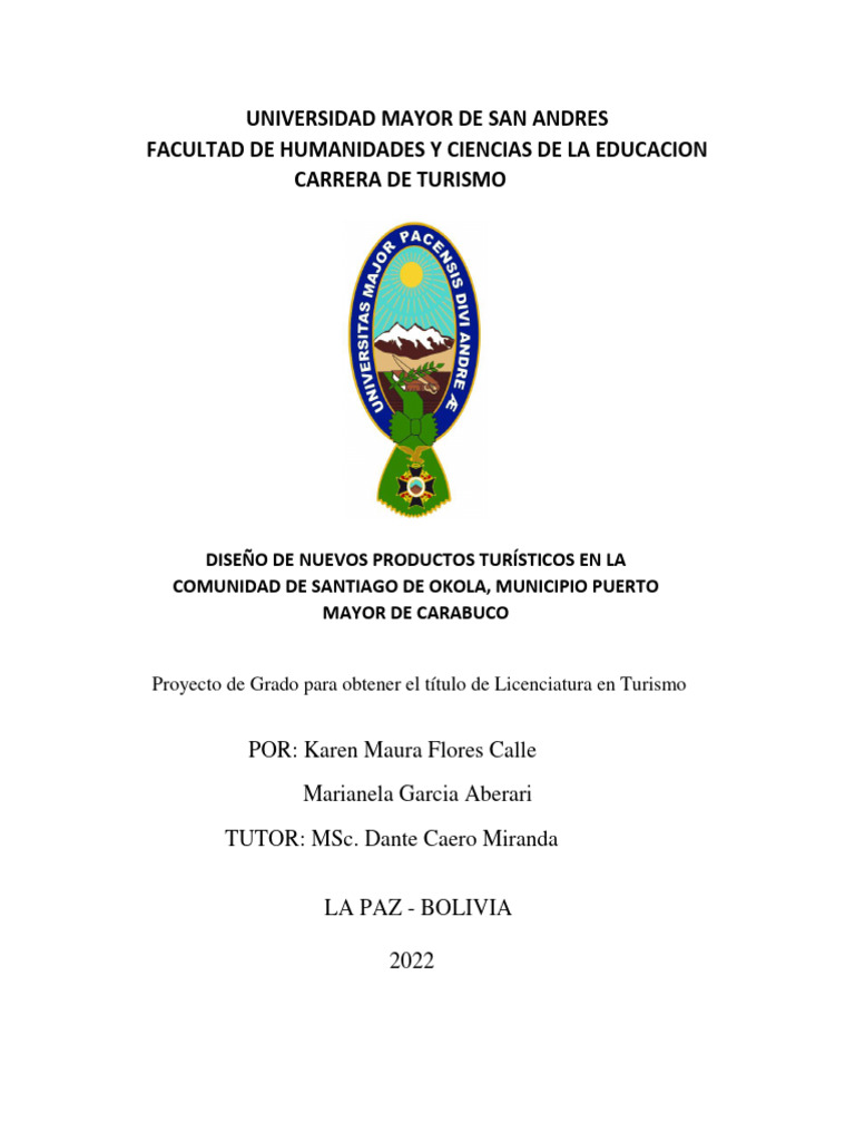 productos turísticos en la comunidad Santiago de Okola”, ubicado en la provincia Camacho,