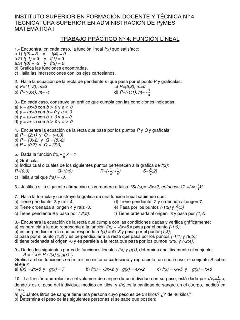 TRABAJO PRÁCTICO N° 4: FUNCIÓN LINEAL