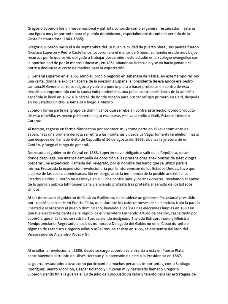 Gregorio Luperón fue un héroe nacional y patriota conocido como el general restaurador , este es