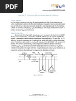 Las prdidas rotacionales, ms las magnticas, son de 1100 W y se supone que son constantes. Para un deslizamiento del 2.2% del rotor a voltaje y frecuencia nominales (Nota: no significa que el motor funciona a plena carga). Halle las siguientes magnitudes del motor: a) La velocidad. c) El factor de potencia e) Tind y Tcarga Solucin: a)La velocidad sincrnica es: Ns = 120 x f = 120 x 60 = 1800 rpm P 4 Ws = 1800 x 2 x pi = 188.5 rad/seg 60 La velocidad mecnica del eje del rotor es: Nm = Ns x (1 S) = 1800 x (1- 0.022) =1760 rpm Wm = Ws x (1 S) = 188.5 x (1- 0.022) = 184.4 rad/seg b)Para encontrar la corriente del estator, se requiere conocer la impedancia equivalente del circuito. El primer paso es combinar la impedancia referida del rotor que se encuentra en paralelo con la rama de magnetizacin y luego la impedancia del estator con tal combinacin en serie. La aludida impedancia del rotor ser: Z2 = R2/S + jX2 = (0.332 / 0.022) + j0.464 = 15.09 + j0.464 ohm b) La corriente en el estator. d) Pconv y Psal f) La eficiencia