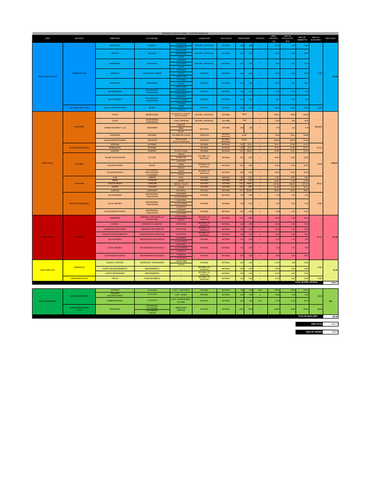 ZONA SUB ZONA AMBIENTES ACTIVIDADES MOBILIARIO ILUMINACIÓN VENTILACIÓN CANTIDAD PRINCIPAL CIRCULACIÓN ÁREA ZONA
