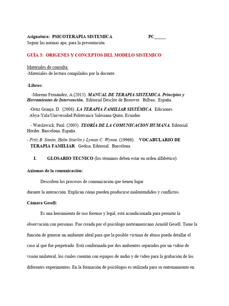 Asignatura: PSICOTERAPIA SISTEMICA PC_____