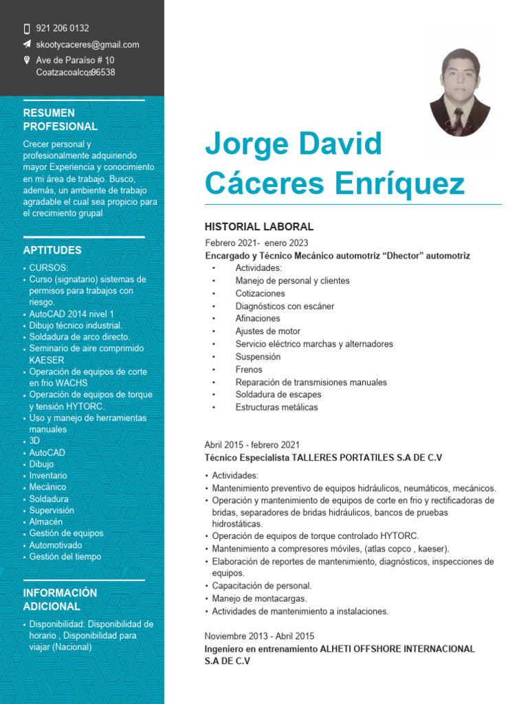 APTITUDES Encargado y Técnico Mecánico automotriz “Dhector” automotriz