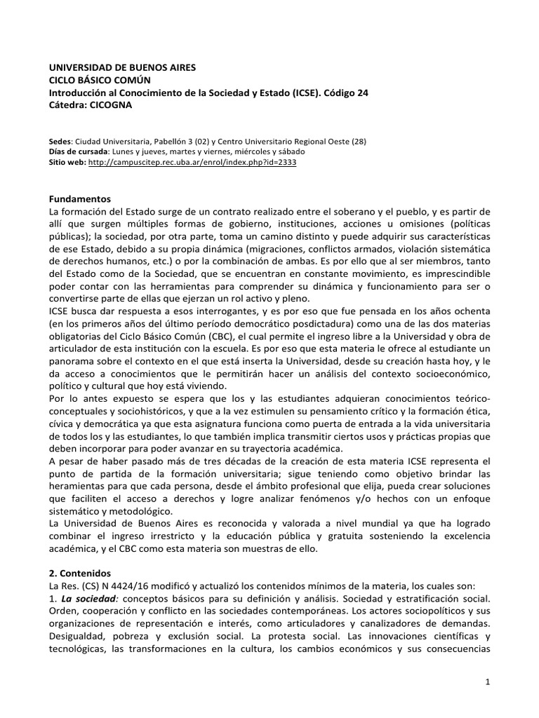 La Res. (CS) N 4424/16 modificó y actualizó los contenidos mínimos de la materia, los cuales son: