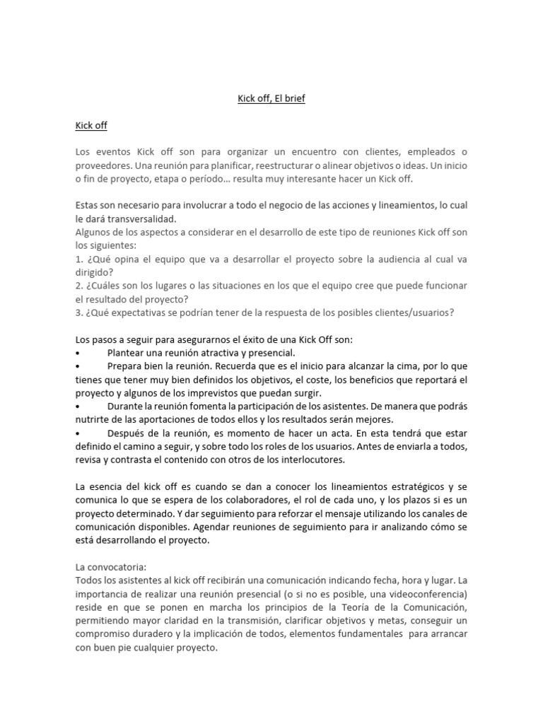 Los pasos a seguir para asegurarnos el éxito de una Kick Off son: