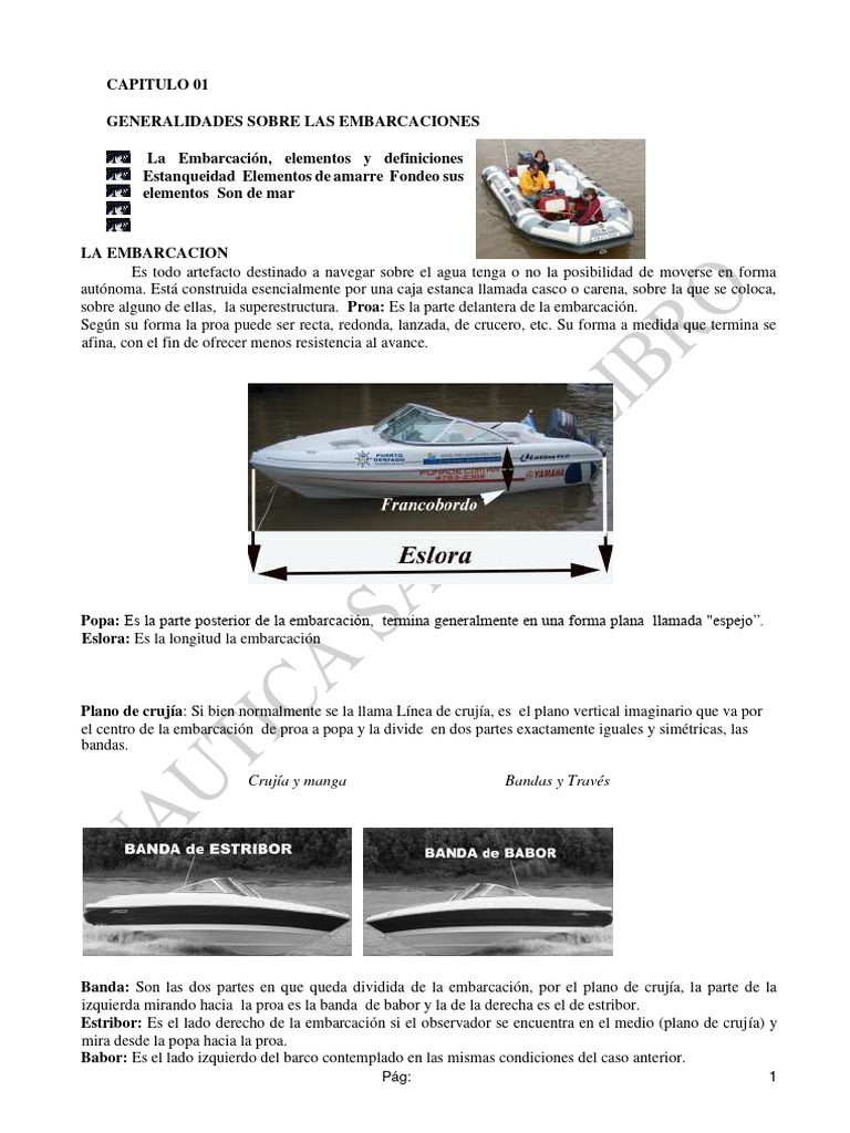 Estribor: Es el lado derecho de la embarcación si el observador se encuentra en el medio (plano de crujía) y