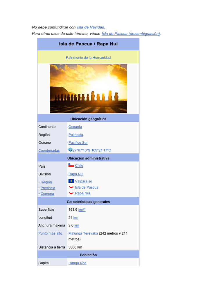 la Polinesia, Oceanía, en medio del océano Pacífico a 3700 kilómetros de Caldera.6 Tiene