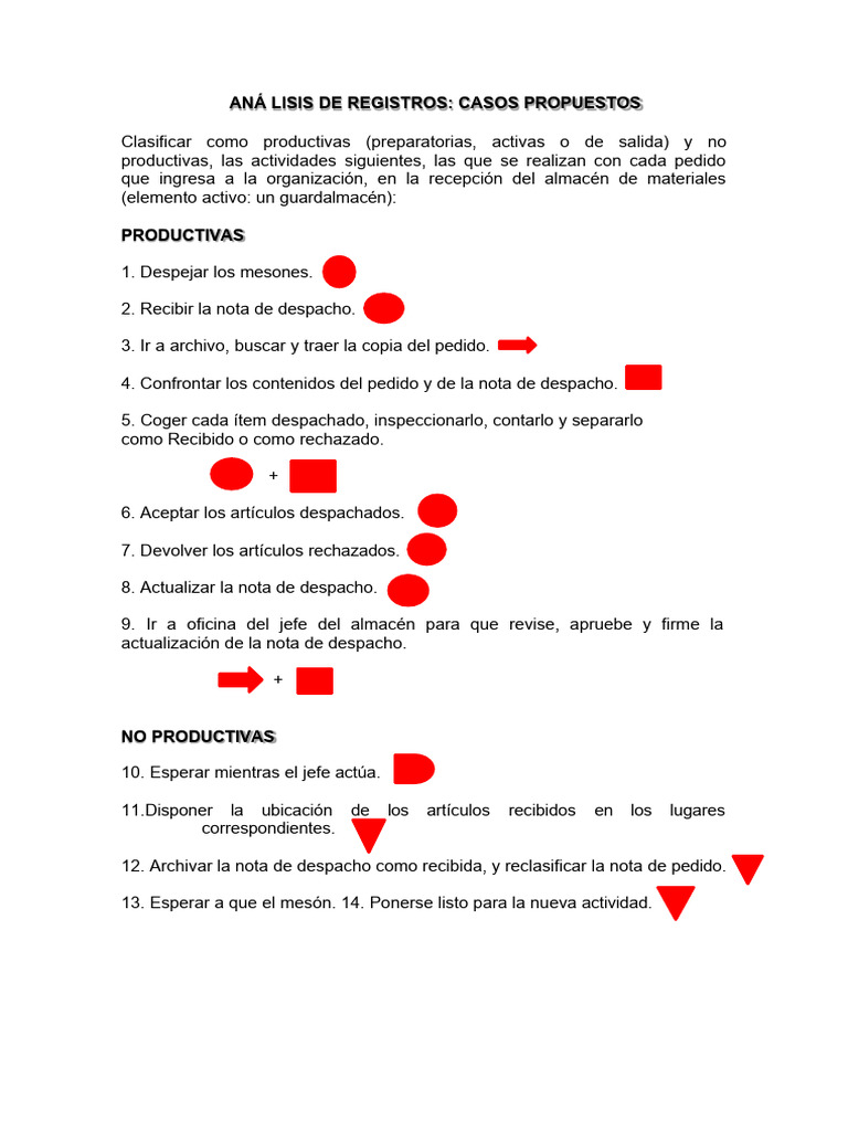 productivas, las actividades siguientes, las que se realizan con cada pedido
