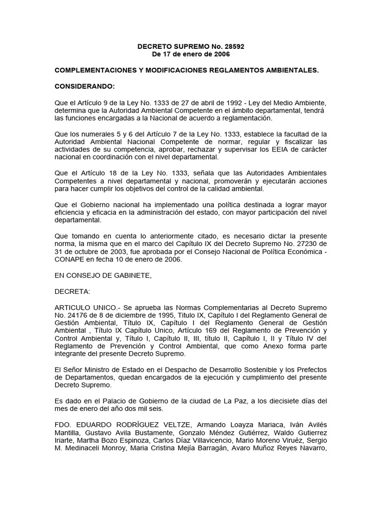 COMPLEMENTACIONES Y MODIFICACIONES REGLAMENTOS AMBIENTALES.