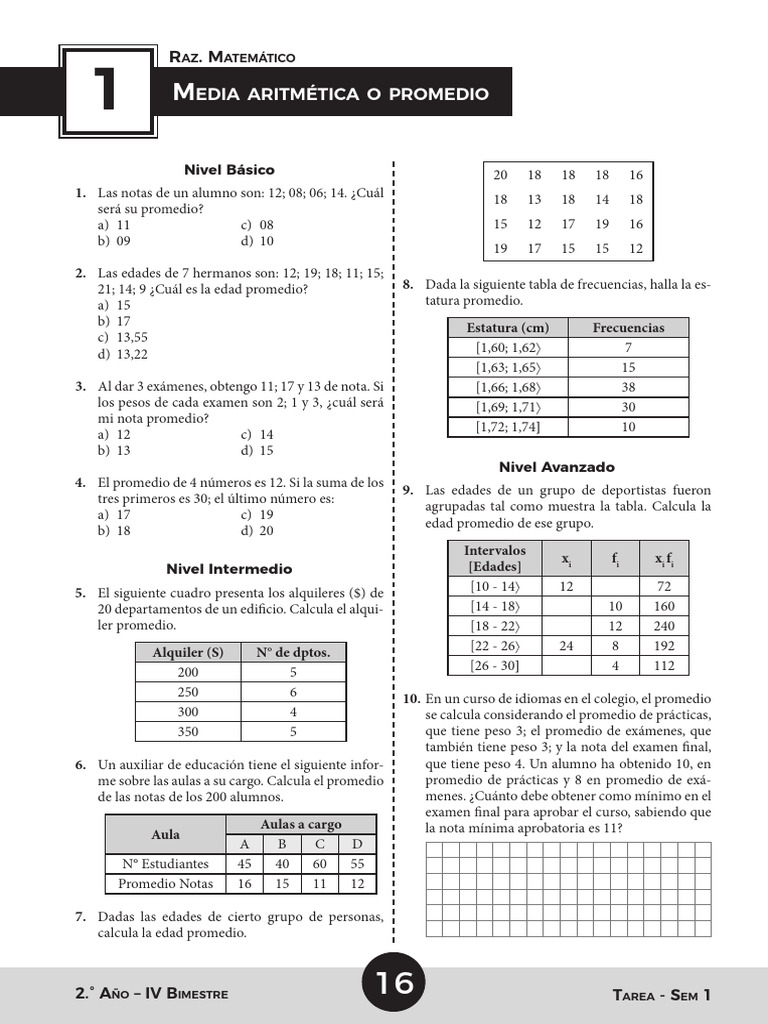 250 6 10. En un curso de idiomas en el colegio, el promedio