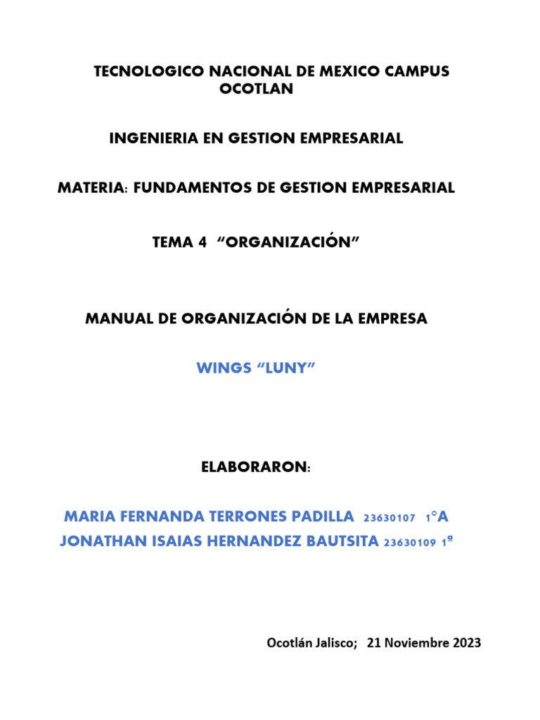 MANUAL DE ORGANIZACIÓN DE LA EMPRESA