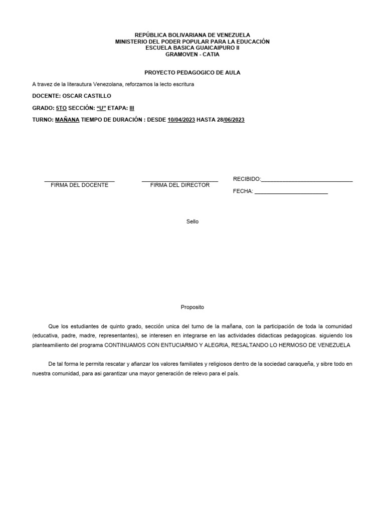 PROYECTO PEDAGOGICO DE AULA