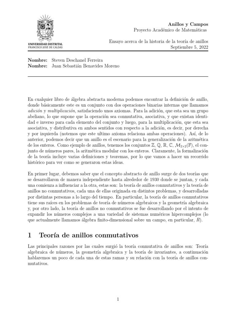 por distintas personas a lo largo del tiempo. En particular, la teorı́a de anillos conmutativos