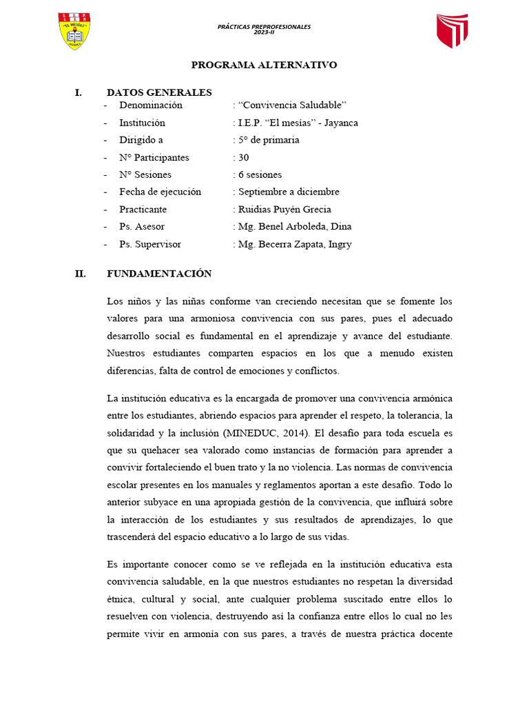 - Denominación : “Convivencia Saludable”