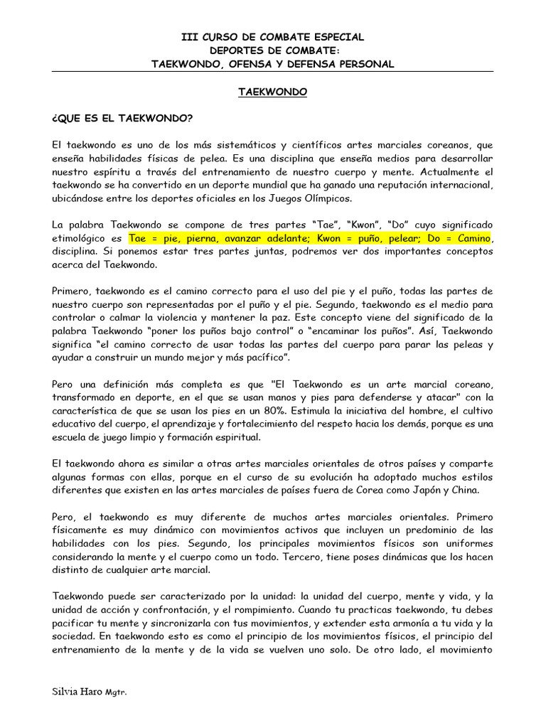 TAEKWONDO, OFENSA Y DEFENSA PERSONAL