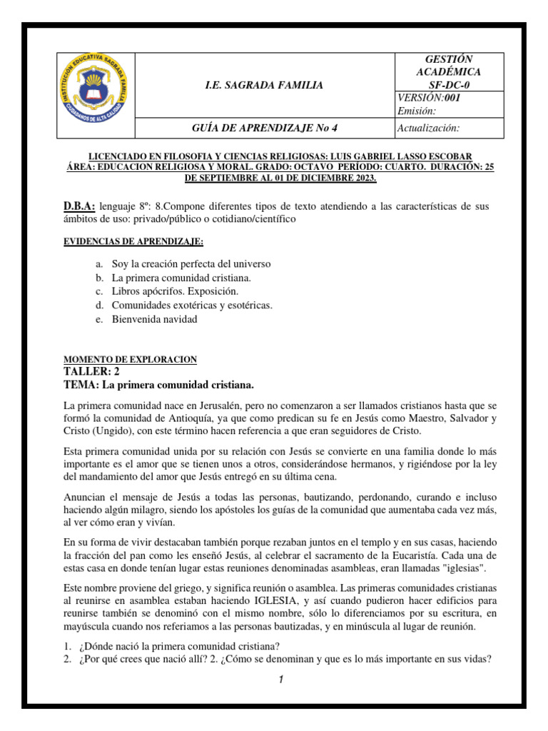 2. ¿Por qué crees que nació allí? 2. ¿Cómo se denominan y que es lo más importante en sus vidas?