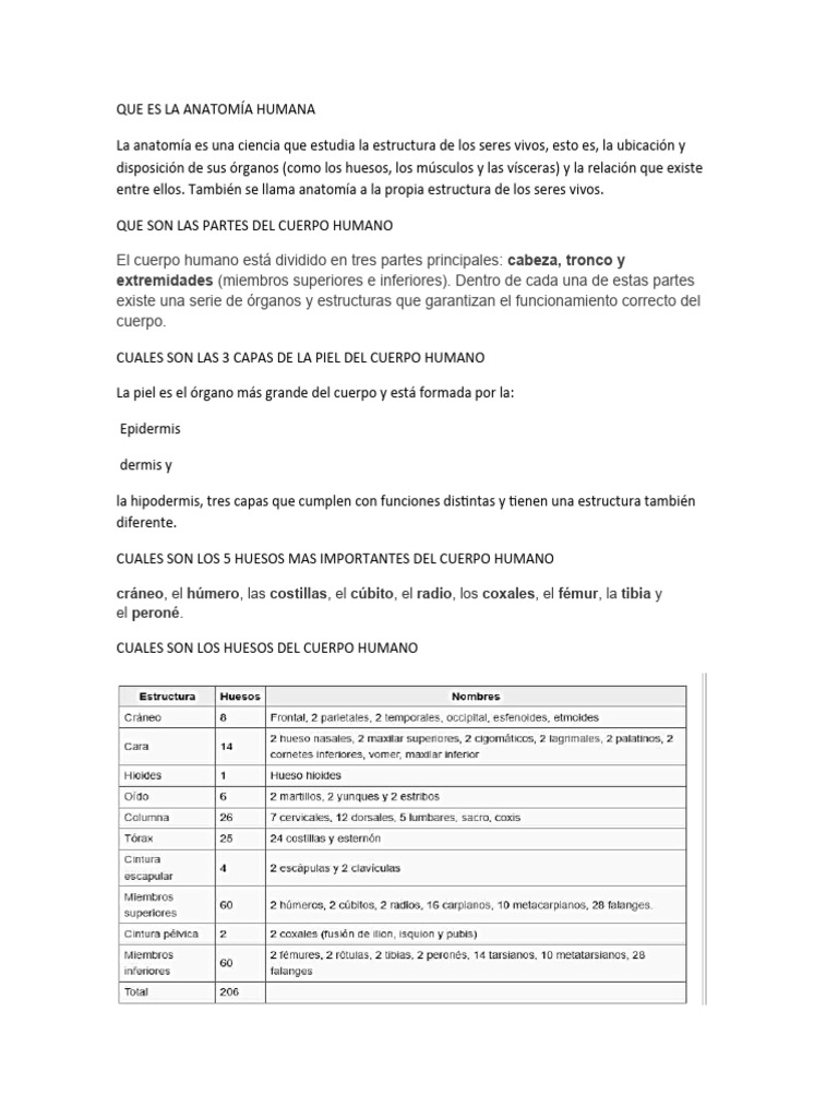 QUE SON LAS PARTES DEL CUERPO HUMANO