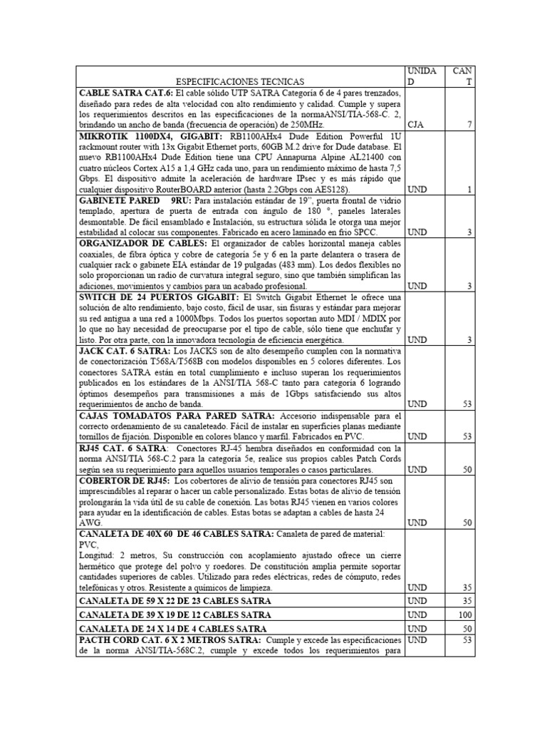 ESPECIFICACIONES TECNICAS DEL SERVICIO DE CABLEADO