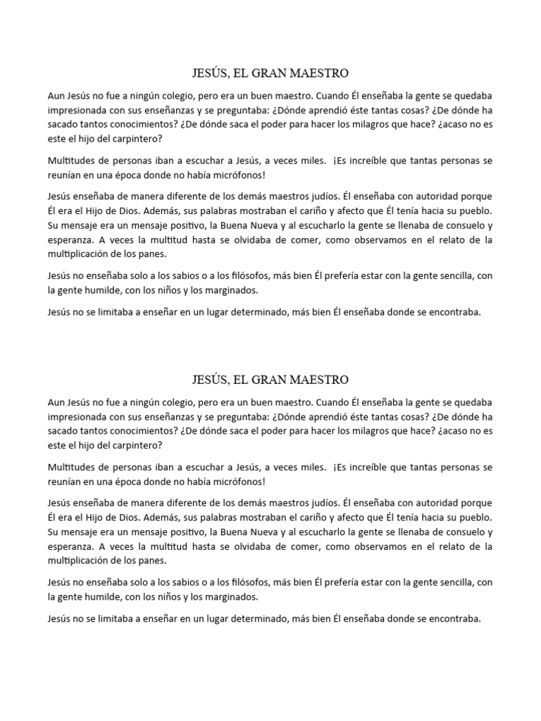 Aun Jesús no fue a ningún colegio, pero era un buen maestro. Cuando Él enseñaba la gente se quedaba