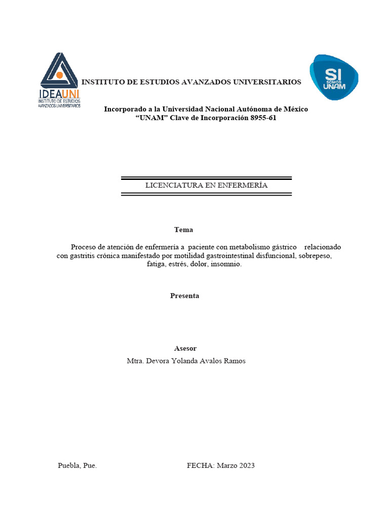 Proceso de atención de enfermería a paciente con metabolismo gástrico relacionado