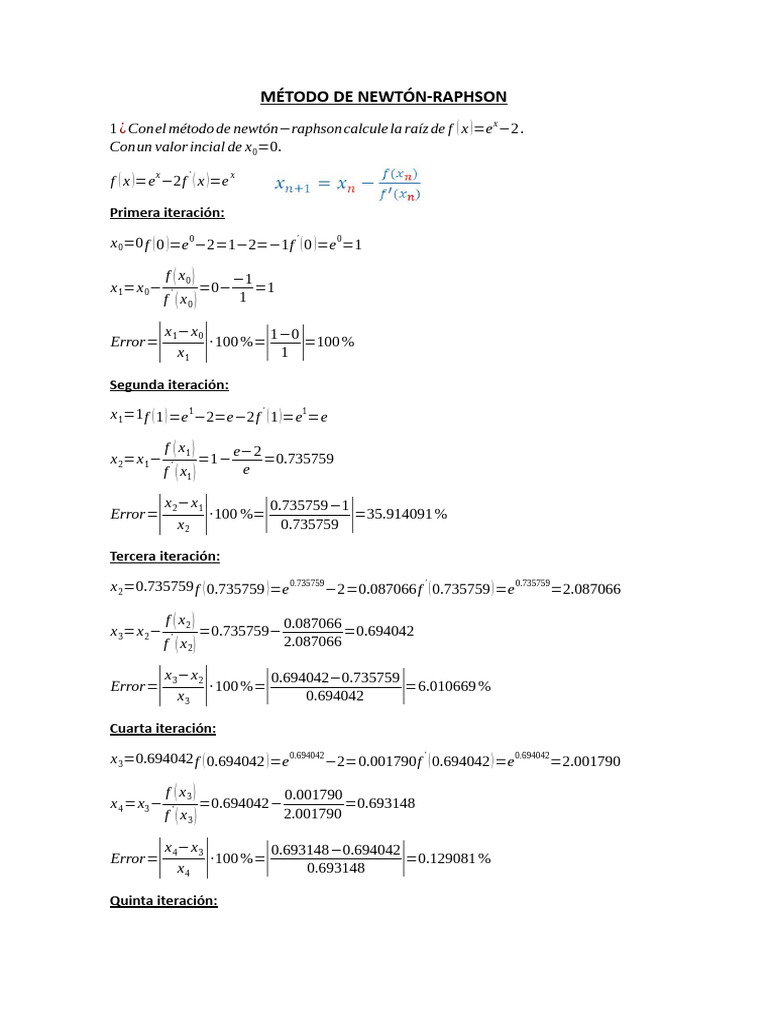 1 ¿ Conel método de newtón−raphson calcule la raíz de f ( x )=e −2 .