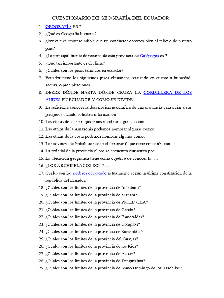 CUESTIONARIO DE GEOGRAFÍA DEL ECUADOR