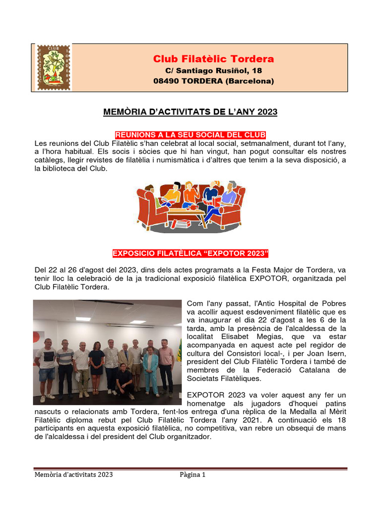 èxit organitzatiu i de participació del Club Filatèlic Tordera.