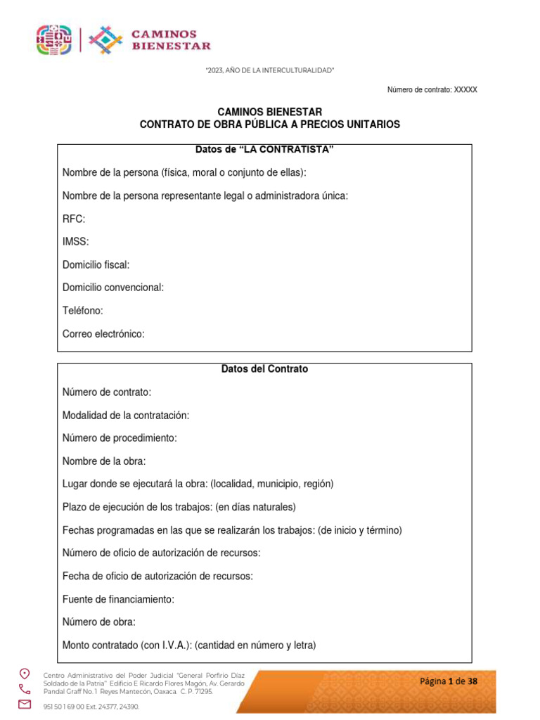 CONTRATO DE OBRA PÚBLICA A PRECIOS UNITARIOS