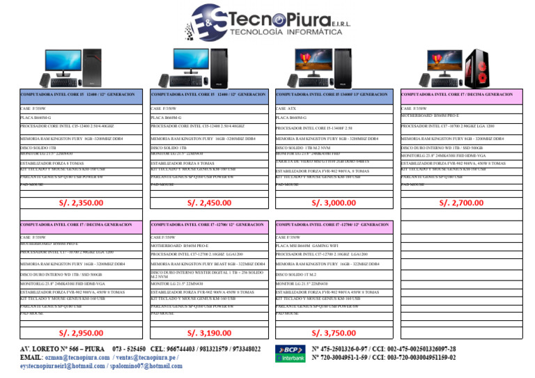 EMAIL: ozman@tecnopiura.com / ventas@tecnopiura.pe / N° 720-3004951-1-59 / CCI: 003-720-003004951159-02