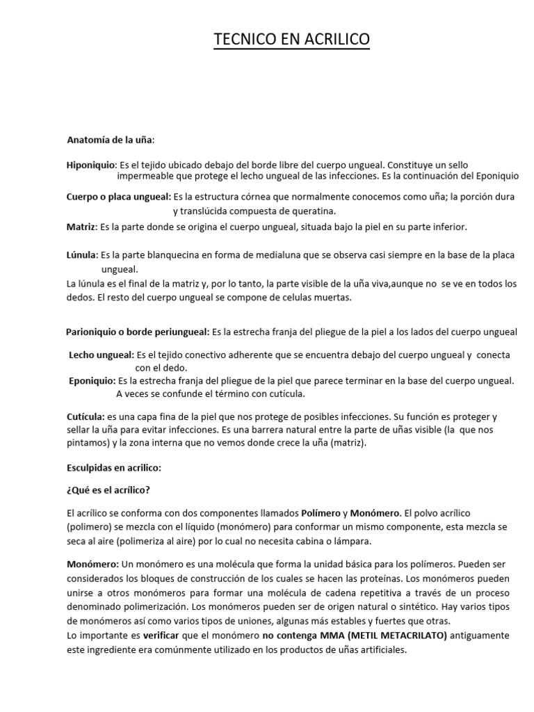 El acrílico se conforma con dos componentes llamados Polímero y Monómero. El polvo acrílico