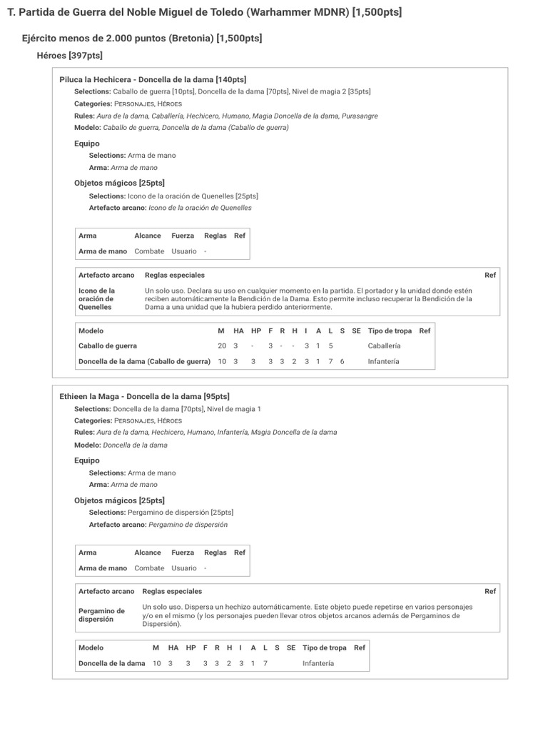 Partida de Guerra del Noble Miguel de Toledo (Warhammer MDNR) [1,500pts]