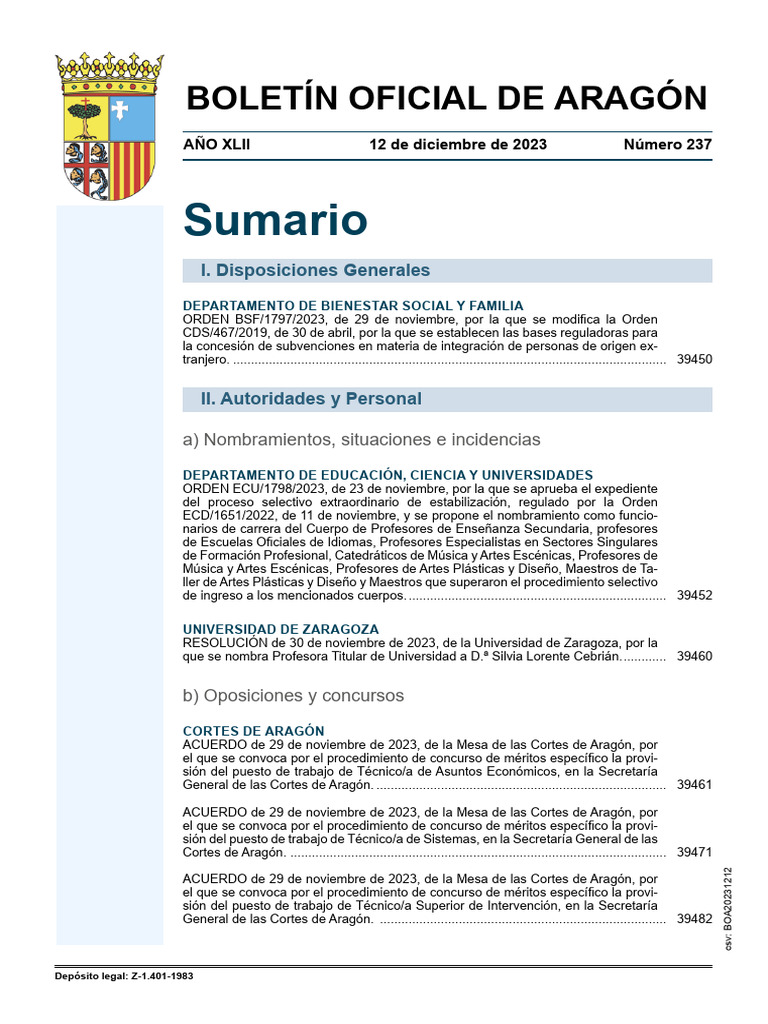 Núm. 237 Boletín Oficial de Aragón 12/12/2023
